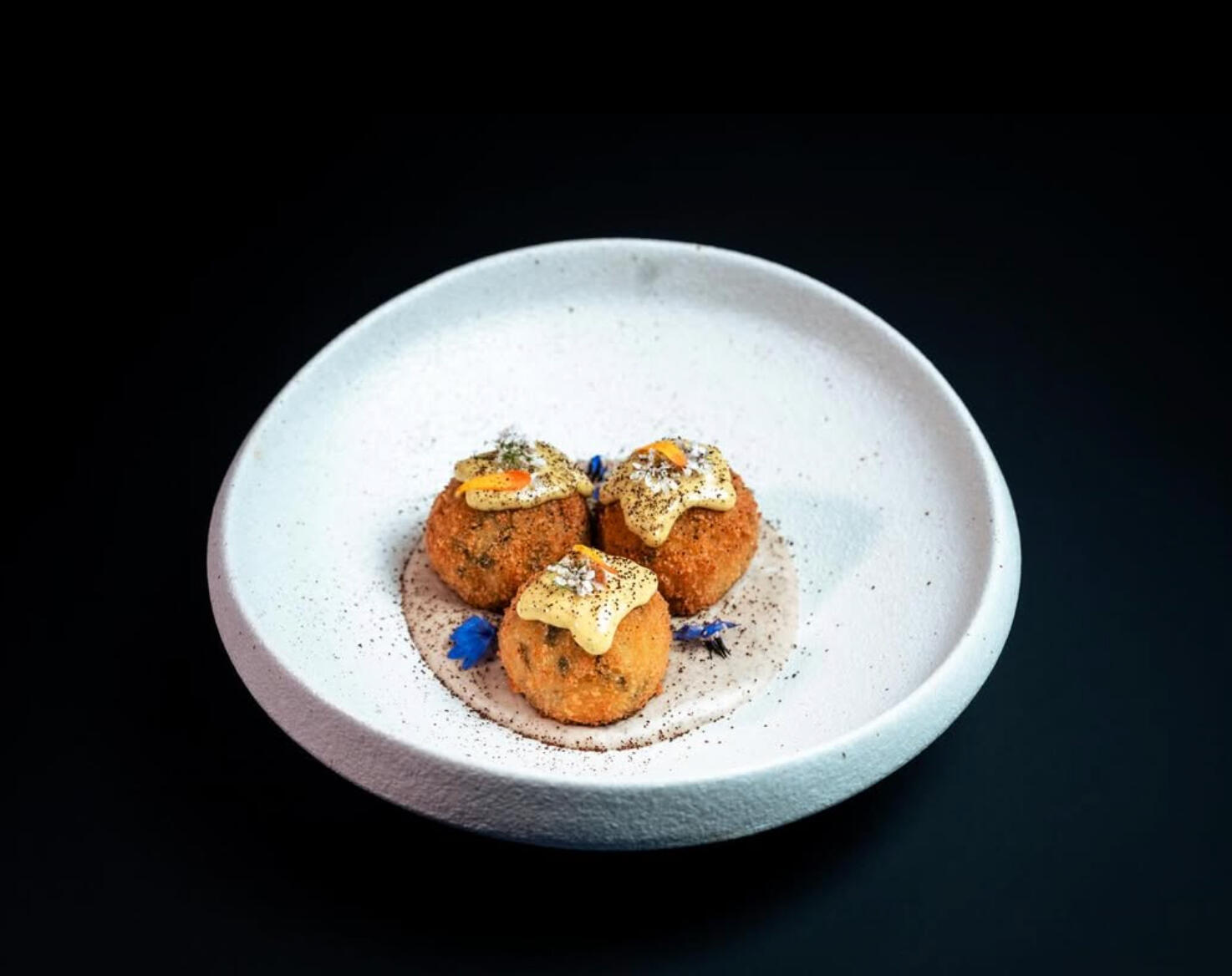 Aguachile Negro with charred chiltepín and local catchCroquetas Gobernador